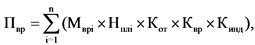 Сумма платежа за сбросы загрязняющих веществ, определенная суммарно по всем загрязняющим веществам исходя из значений объема или массы сбросов загрязняющих веществ, равных значениям временно разрешенных сбросов, умноженных на соответствующие ставки платы (Пврс), определяется по формуле: