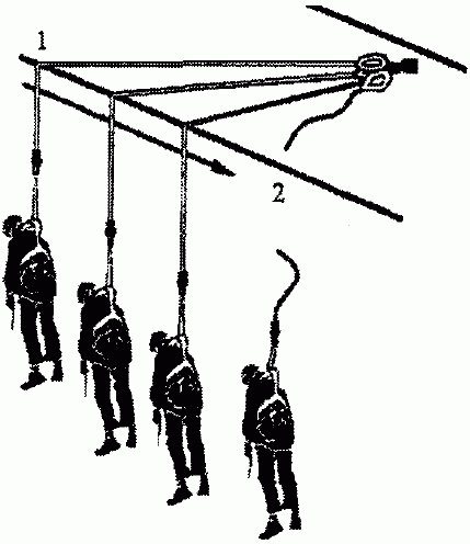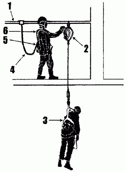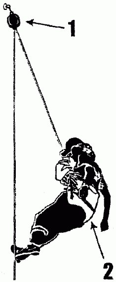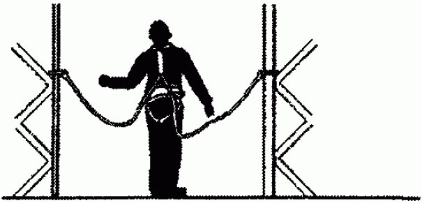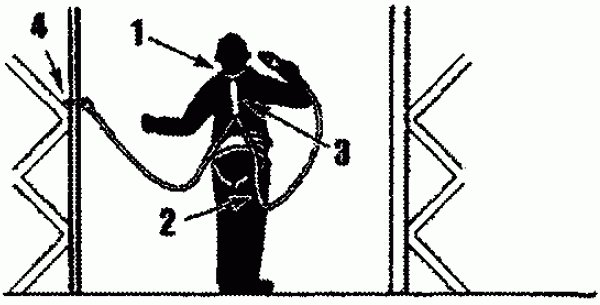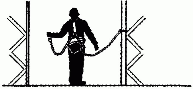 Не допускается удерживать работника, который поднимается (спускается), путем пропускания страховочного каната через плечо, поясницу страхующего, а также использовать какие-либо технические приспособления, прикрепленные к привязи страхующего.