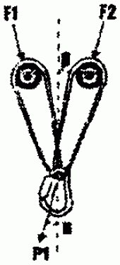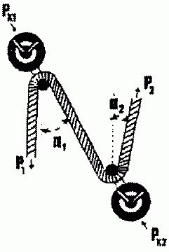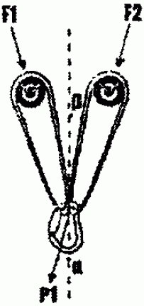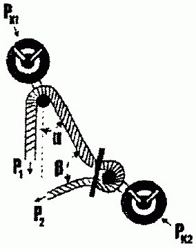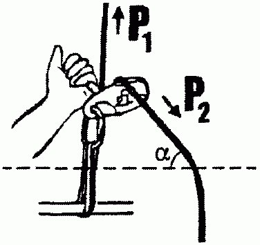 P1 - усилие на работнике, которого удерживает страхующий (усилие рывка);