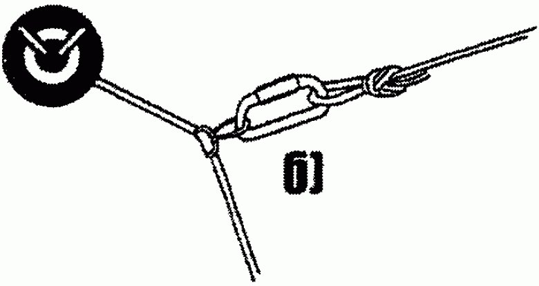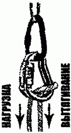 Схватывающий узел, затягивающийся под нагрузкой. Выполняется полиамидным шнуром диаметром 6 мм на канате 10 - 12 мм