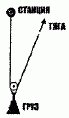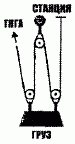 Графическая схема полиспаста с одним подвижным блоком (отношение массы груза к тяговому усилию равно 2)