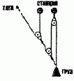 Графическая схема полиспаста с двумя подвижными блоками (отношение массы груза к тяговому усилию равно 4)