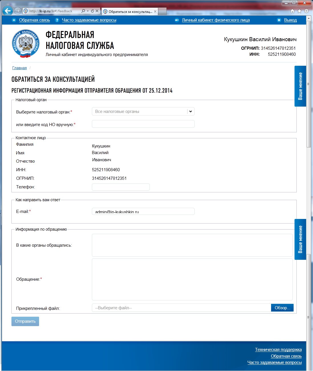 Личный кабинет налогоплательщика индивидуального предпринимателя