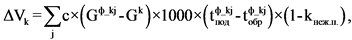 Gф_kj - фактический массовый расход теплоносителя за j-е сутки k-го факта нарушения качества теплоснабжения (т);