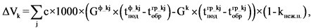 - фактический массовый расход теплоносителя за j-е сутки k-го факта нарушения качества теплоснабжения (т);